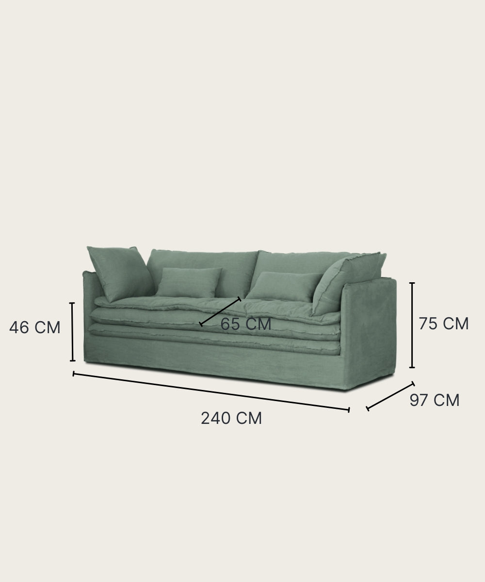 Houssage 100% lin entièrement amovible, lavage en machine 30° sans essorage.